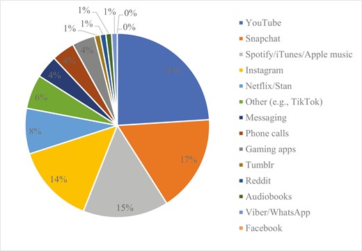 The phone greatly outpolled all other devices, followed by the laptop, and YouTube edged into first place for apps, followed by Snapchat, music apps and Instagram. Only then did Netflix get a look in, followed by “Other, e.g. TikTok” in a surprisingly weak showing by the Chinese-owned moral/tech panic generator du jour. Facebook came last of the individually named apps and Twitter did not, you’ll be shocked, make the cut at all.